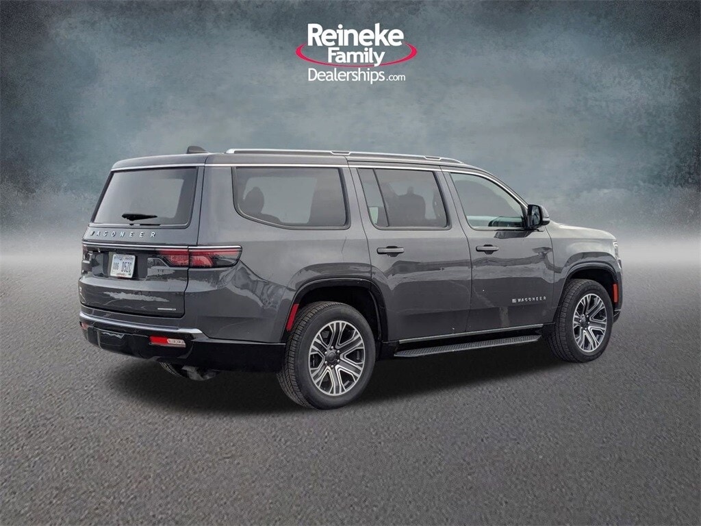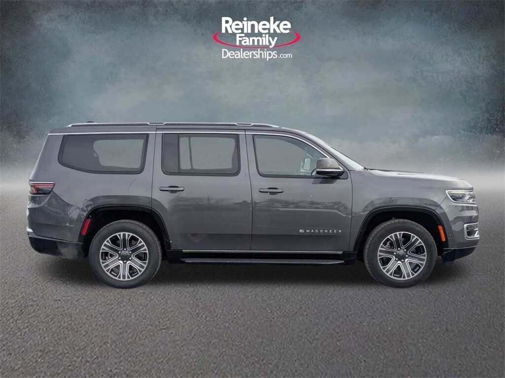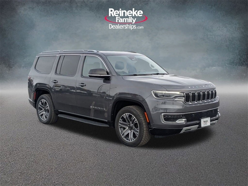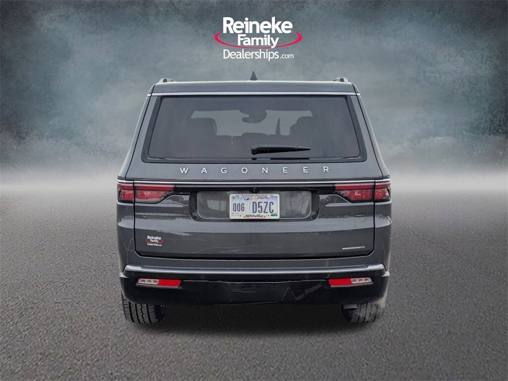 Check out all these great options! Quick Order Package 25J, 10 Speakers, 118 MPH Maximum Speed Calibration, 3.55 Rear Axle Ratio, 3rd row seats: bench, 4-Wheel Disc Brakes, ABS brakes, Adjustable pedals, Air Conditioning, Alloy wheels, AM/FM radio: SiriusXM with 360L, Anti-whiplash front head restraints, Apple CarPlay/Android Auto, Audio memory, Auto-dimming door mirrors, Auto-dimming Rear-View mirror, Auto-leveling suspension, Automatic temperature control, Brake assist, Bumpers: body-color, Compass, Delay-off headlights, Driver door bin, Driver vanity mirror, Driver's Seat Mounted Armrest, Dual front impact airbags, Dual front side impact airbags, Electronic Stability Control, Emergency communication system: Wagoneer Connect, Exterior Parking Camera Rear, Four wheel independent suspension, Front anti-roll bar, Front Bucket Seats, Front Center Armrest w/Storage, Front dual zone A/C, Front fog lights, Front reading lights, Fully automatic headlights, Garage door transmitter, Genuine wood console insert, Genuine wood dashboard insert, Genuine wood door panel insert, Heated door mirrors, Heated front seats, Heated rear seats, Heated steering wheel, Illuminated entry, Knee airbag, Leather Trimmed Bucket Seats, Low tire pressure warning, Memory seat, Navigation System, Normal Duty Suspension, Occupant sensing airbag, Outside temperature display, Overhead airbag, Overhead console, Panic alarm, Passenger door bin, Passenger seat mounted armrest, Passenger vanity mirror, Pedal memory, Power adjustable front head restraints, Power door mirrors, Power driver seat, Power Liftgate, Power passenger seat, Power steering, Power windows, Radio data system, Radio: Uconnect 5 Nav w/10.1" Display, Rain sensing wipers, Rear air conditioning, Rear anti-roll bar, Rear dual zone A/C, Rear reading lights, Rear seat center armrest, Rear window defroster, Rear window wiper, Reclining 3rd row seat, Remote keyless entry, Security system, Speed control, Speed-sensing steering, Speed-Sensitive Wipers, Split folding rear seat, Steering wheel memory, Steering wheel mounted audio controls, Tachometer, Telescoping steering wheel, Tilt steering wheel, Traction control, Trip computer, Turn signal indicator mirrors, Variably intermittent wipers, Ventilated front seats, Voltmeter, and Wheels: 20" x 9.0" Premium 2 Aluminum.