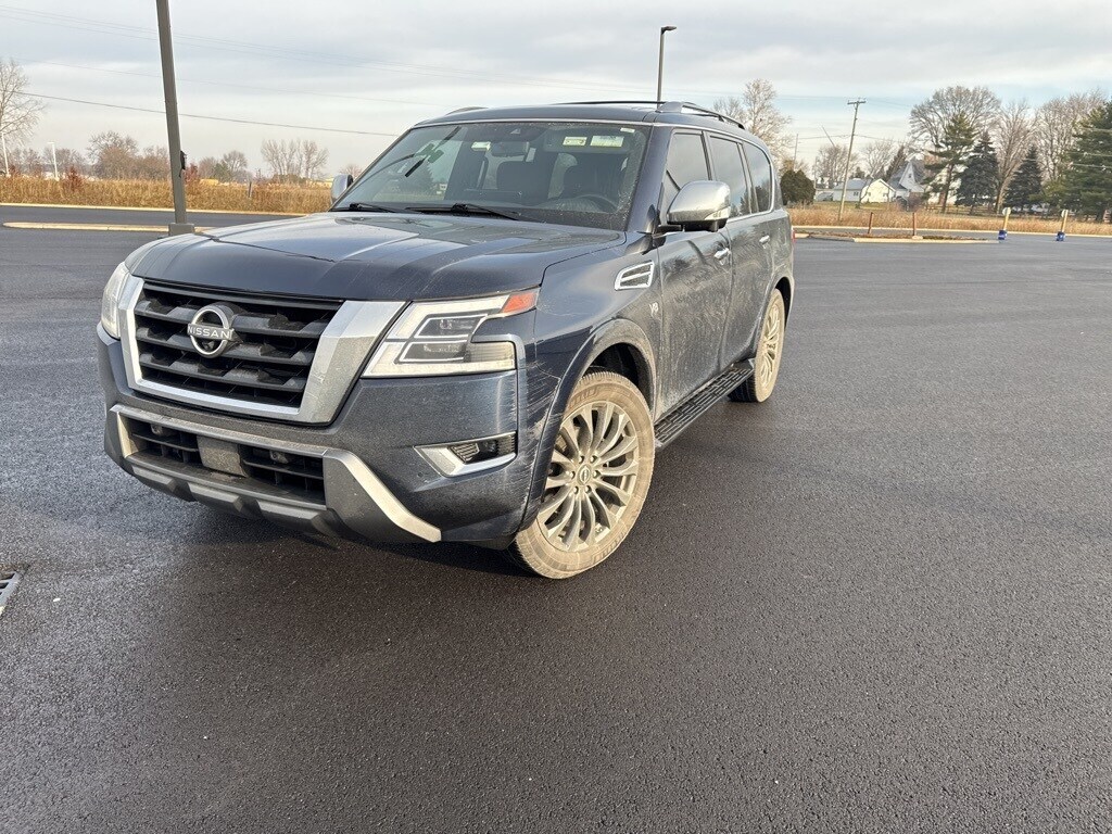 Check out all these great options! 13 Speakers, 2.94 Axle Ratio, 3rd Row Carpeted Floor Mats - Bench Seat, 3rd row seats: split-bench, 4-Wheel Disc Brakes, A/V remote, ABS brakes, Air Conditioning, Alloy wheels, AM/FM radio: SiriusXM, Anti-whiplash front head restraints, Auto High-beam Headlights, Auto tilt-away steering wheel, Auto-dimming door mirrors, Auto-dimming Rear-View mirror, Auto-leveling suspension, Automatic temperature control, Brake assist, Bumpers: body-color, Climate-Controlled Front Bucket Seats, Delay-off headlights, Driver door bin, Driver vanity mirror, Dual front impact airbags, Dual front side impact airbags, Electronic Stability Control, Emergency communication system: NissanConnect Services, Exterior Parking Camera Rear, Four wheel independent suspension, Front anti-roll bar, Front Bucket Seats, Front Center Armrest, Front dual zone A/C, Front fog lights, Front reading lights, Fully automatic headlights, Garage door transmitter: HomeLink, Headphones, Heated door mirrors, Heated front seats, Heated rear seats, Heated steering wheel, Illuminated entry, Illuminated Kick Plates, Illuminated Scuff Plate, Knee airbag, Leather Shift Knob, Low tire pressure warning, Memory seat, Navigation System, NissanConnect featuring Apple CarPlay and Android Auto, Occupant sensing airbag, Outside temperature display, Overhead airbag, Overhead console, Panic alarm, Passenger door bin, Passenger vanity mirror, Power door mirrors, Power driver seat, Power Liftgate, Power moonroof, Power passenger seat, Power steering, Power windows, Quilted Leather Seat Trim, Radio: NissanConnect w/SiriusXM, Rain sensing wipers, Rear air conditioning, Rear anti-roll bar, Rear reading lights, Rear seat center armrest, Rear window defroster, Rear window wiper, Reclining 3rd row seat, Remote keyless entry, Roof Rail Cross Bars, Security system, Speed control, Speed-sensing steering, Speed-Sensitive Wipers, Split folding rear seat, Spoiler, Steering wheel memory, Steering wheel mounted audio controls, Tachometer, Telescoping steering wheel, Tilt steering wheel, Traction control, Trip computer, Turn signal indicator mirrors, Variably intermittent wipers, Ventilated front seats, Voltmeter, and Wheels: 22" x 8J Machine-Faced w/Tinted Clear Coat.